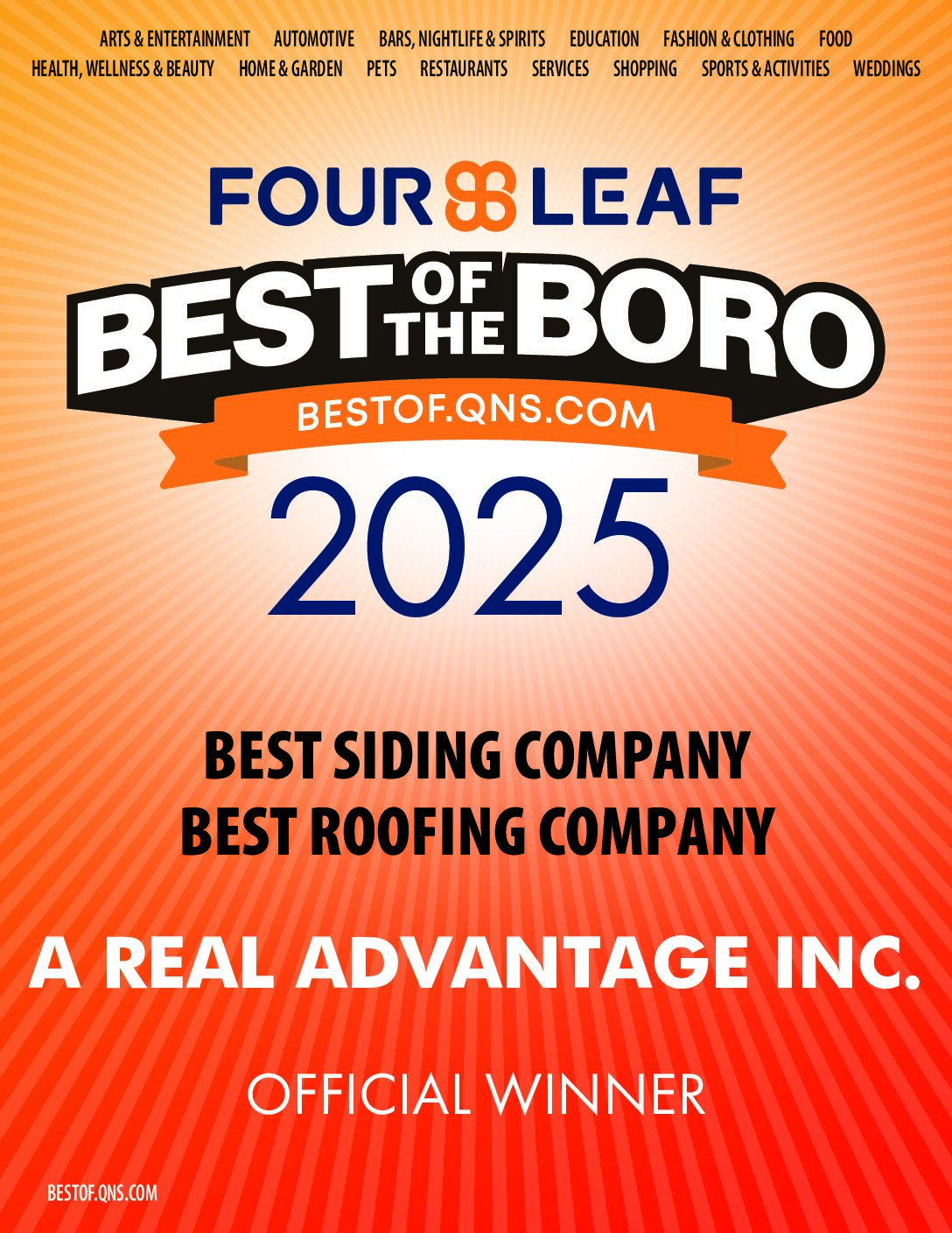 At A Real Advantage, you can rest assured that your home is in great hands. We have been BBB Accredited since February 4, 1992, and possess fully licensed and insured craftsmen in all five boroughs of New York City, Nassau County, and Westchester County. We also have Master Elite accreditation, a 5-star rating, capital financing, and won the Best of the Boro Contest 2017 for Queens.